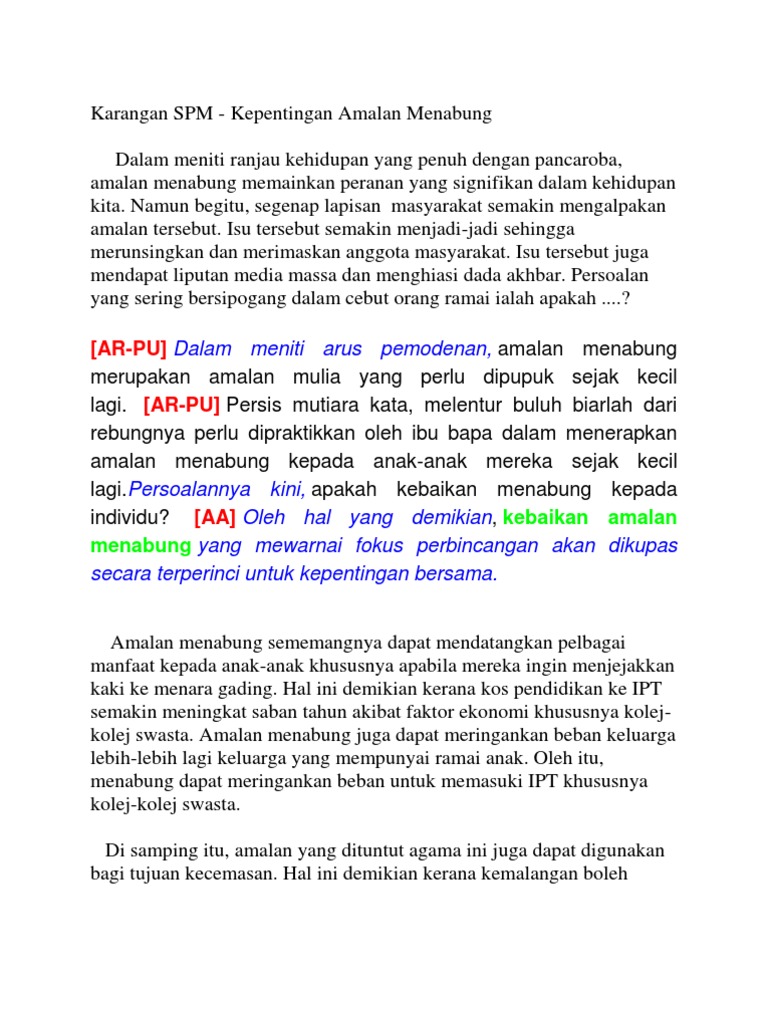 Karangan Spm Kepentingan Amalan Menabung Pdf
